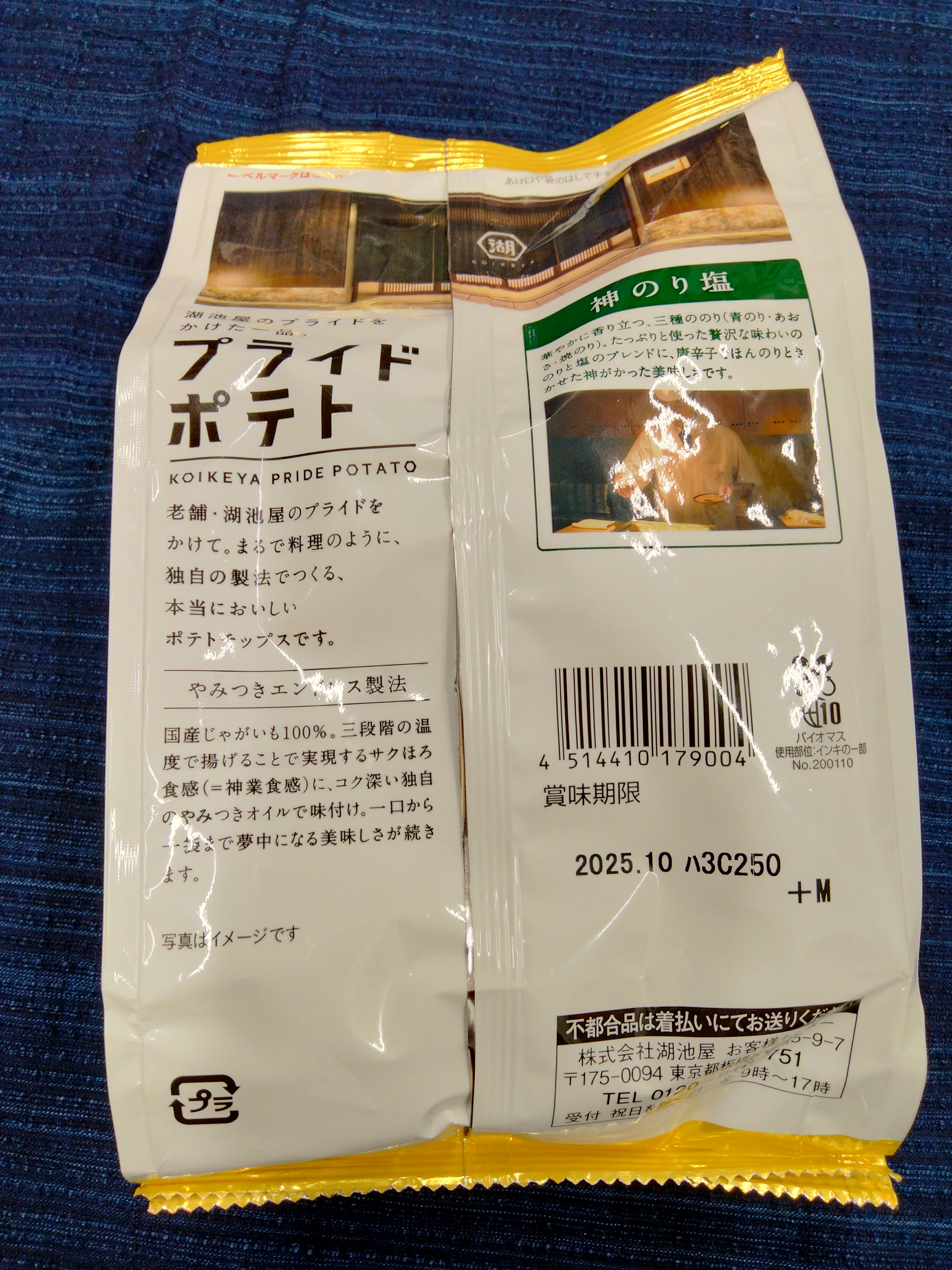 (株)湖池屋 フライドポテト神のり塩 2025.10 ハ3C250+M |
