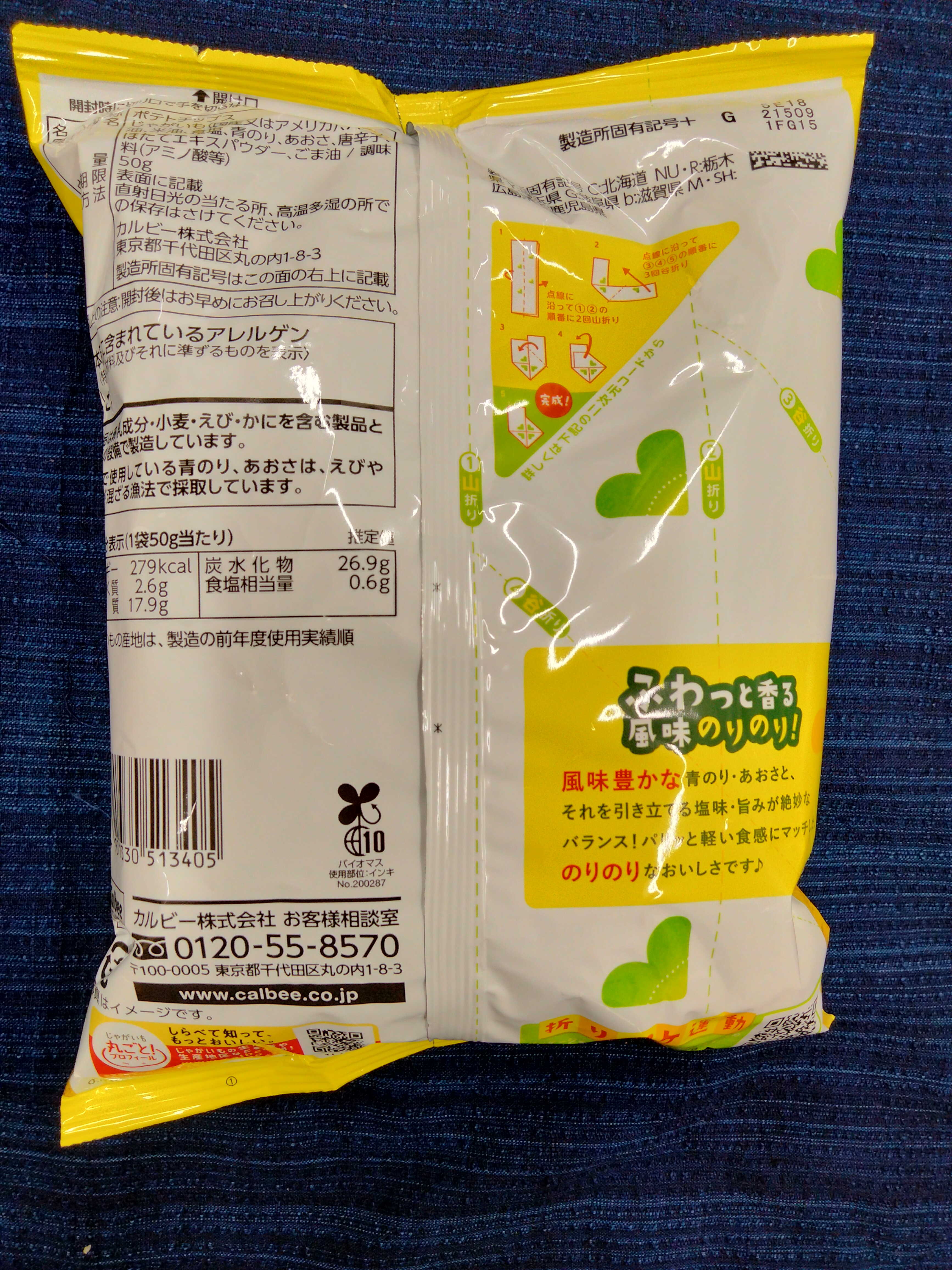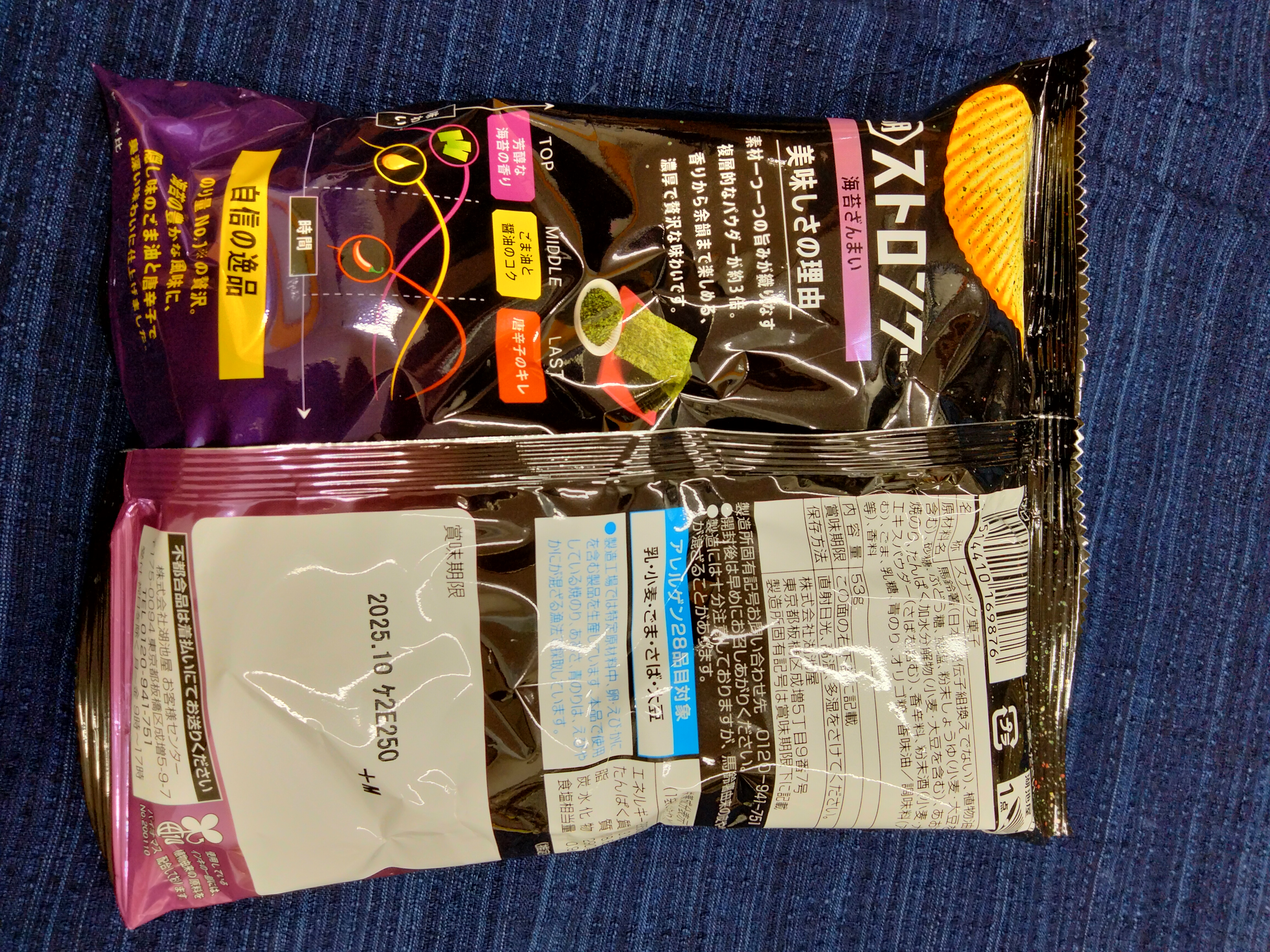 カルビー(株) ポテトチップス のりしお 2025.10 5E18 21509 1FG15 +G |