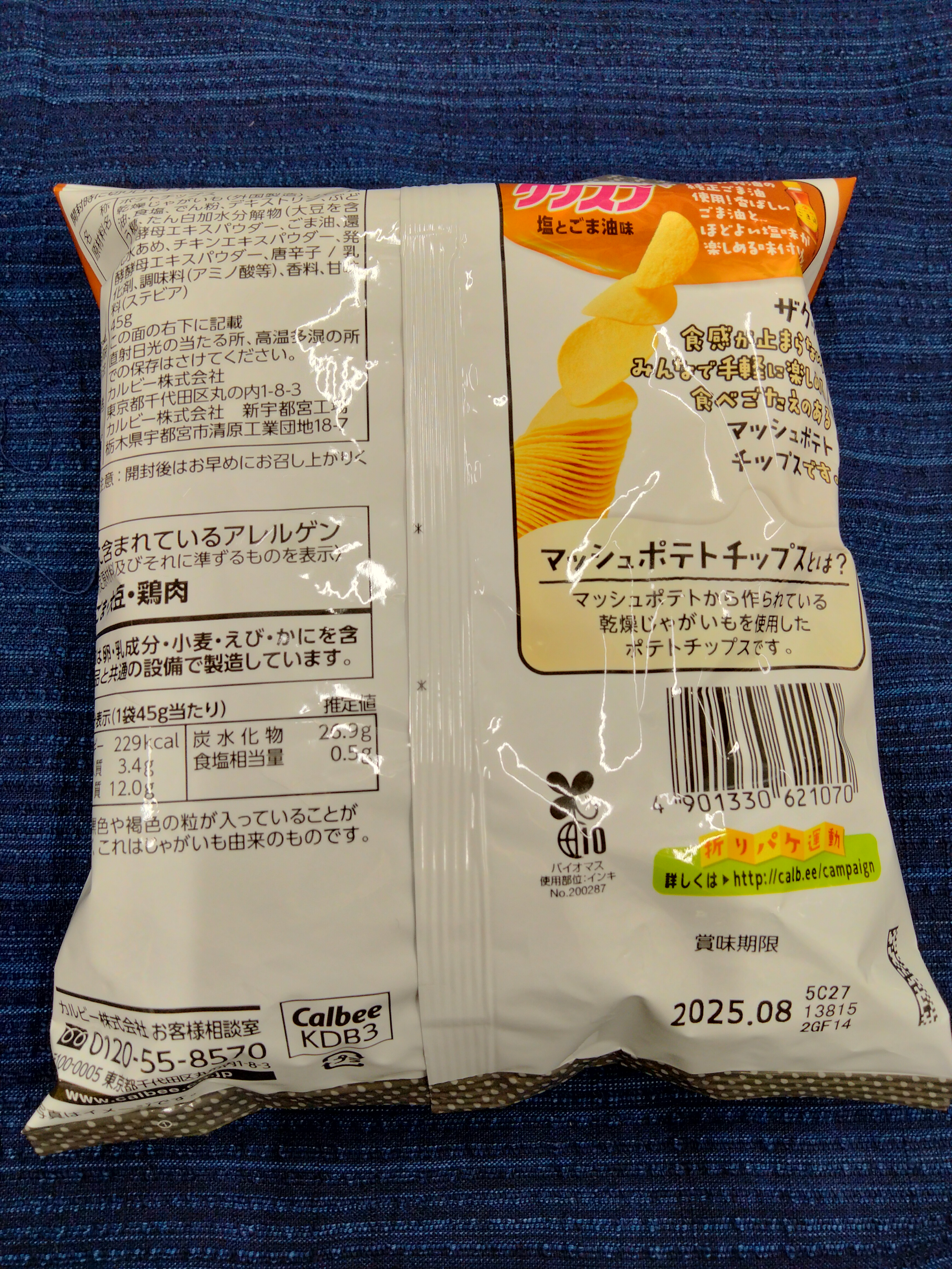 カルビー(株) クリスプ塩とごま油味 2025.08 5C27 13815 2GF14 |